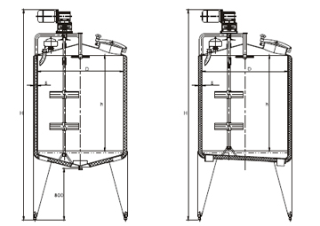 | 有效容積 | 筒體尺寸(D×h) | 總高(H) | 保溫層 | 進(jìn)出料口徑 | 電機(jī)功率 | 攪拌速度 |