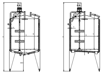 | 有效容積 | 筒體尺寸(D×h) | 總高(H) | 保溫層 | 進出料口徑 | 電機功率 | 攪拌速度 |